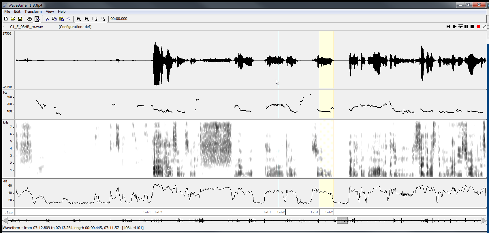 - 例えば,「こんにちは」という波形の,どこからどこまでが「こ」なのか,「ん」なのか,といった視覚的な印を付けることができる